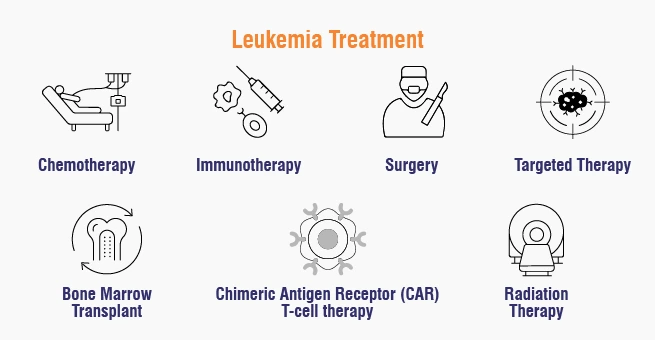 Common treatment methods for leukemia include chemotherapy, radiation therapy, and bone marrow transplant. In some cases, targeted therapy and immunotherapy are also used. The type of treatment will depend on the type of leukemia and the stage of the disease.